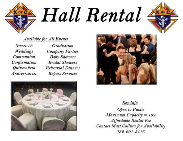 repasts. For further information and hall availability, please contact Matt Collura for availability at